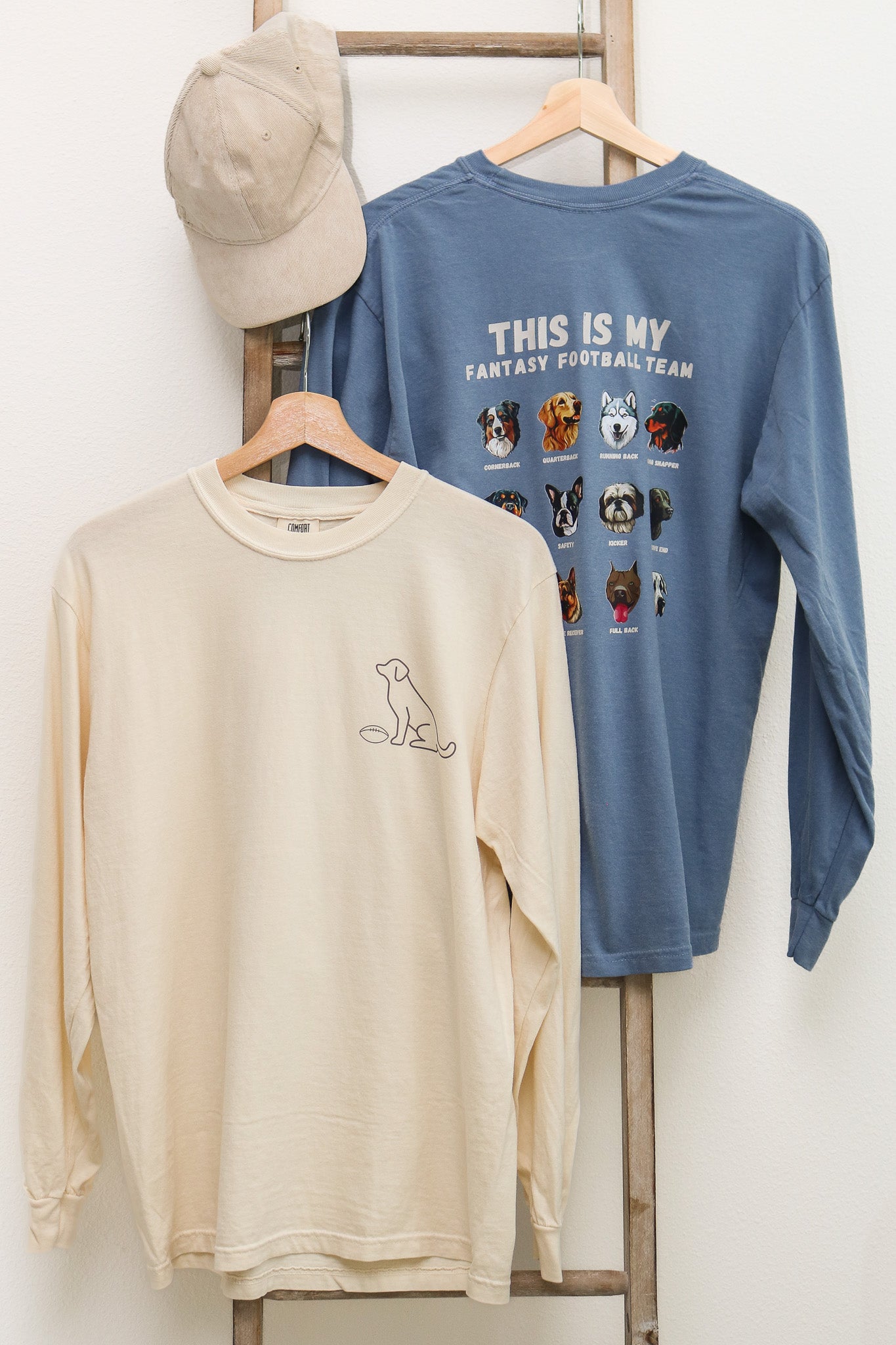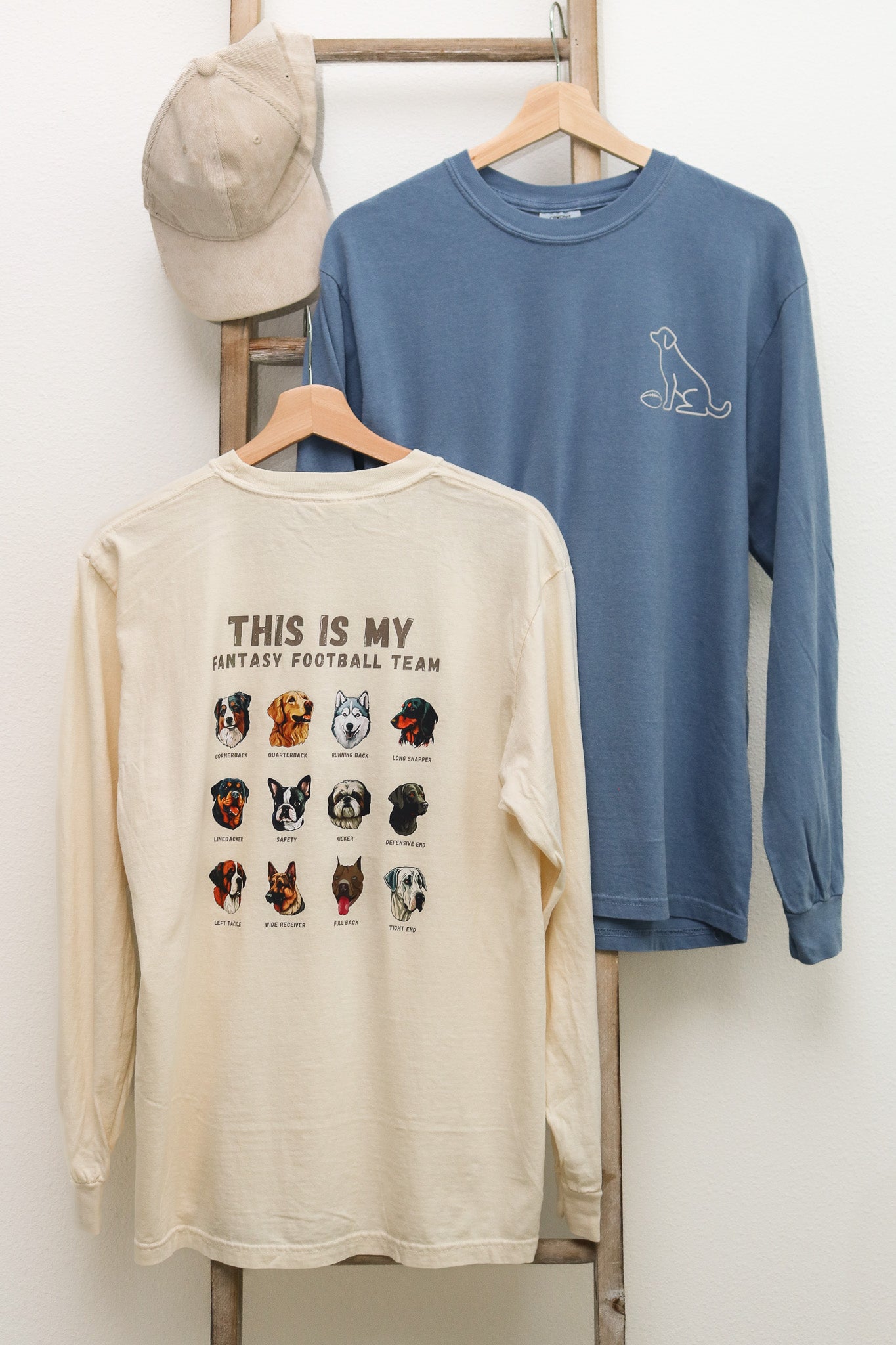 Dog Fantasy Football Long Sleeve Graphic Tee (ivory)