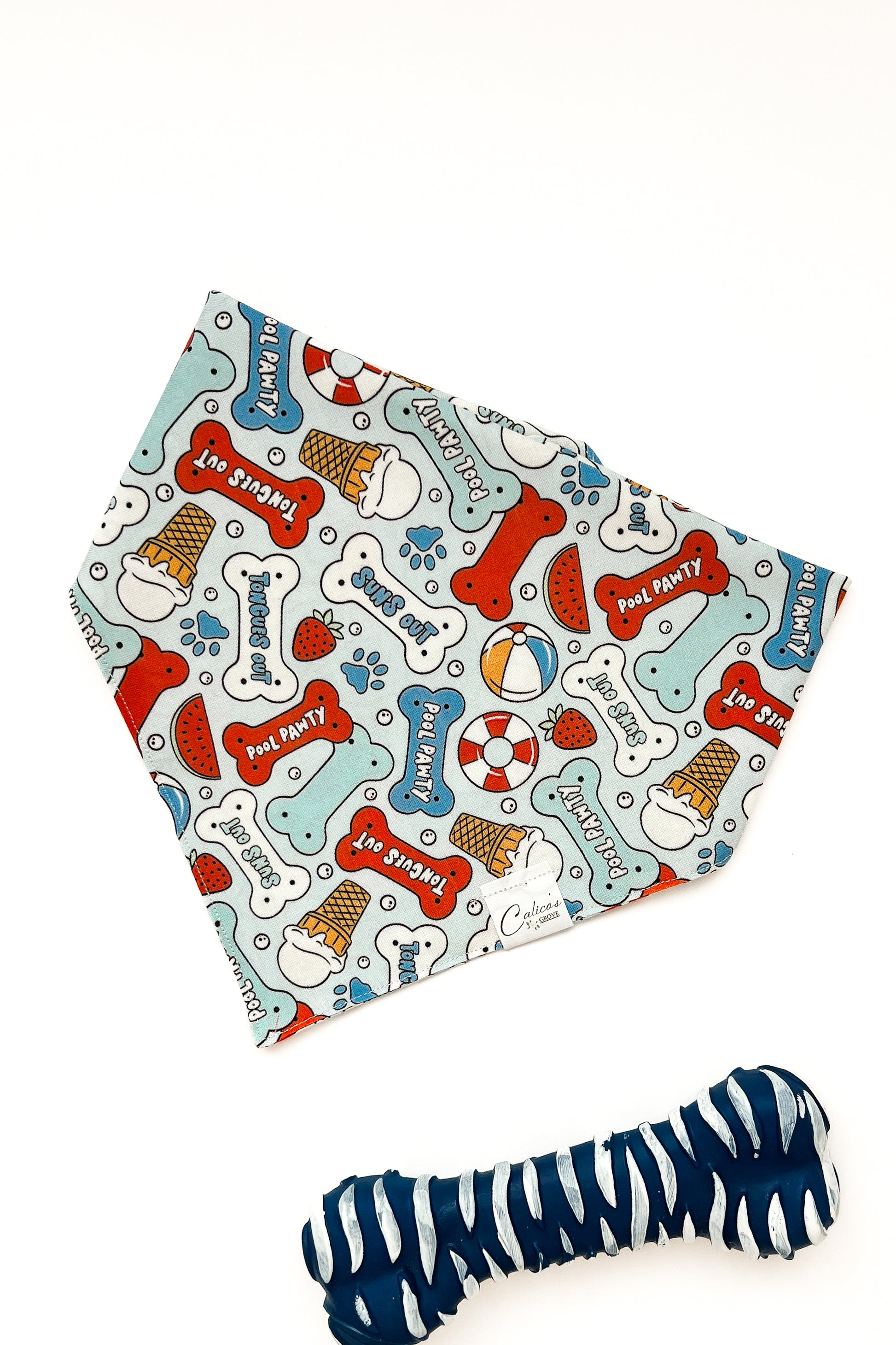 Each bandana is handmade by my mom, Tina and comes with a "Calico's Boutique" tag sewed on! They are triangle shaped with a tie neck (cat bandanas have a collar insert instead) and double sided with the same fabric, making them sturdy, QUALITY bandanas.