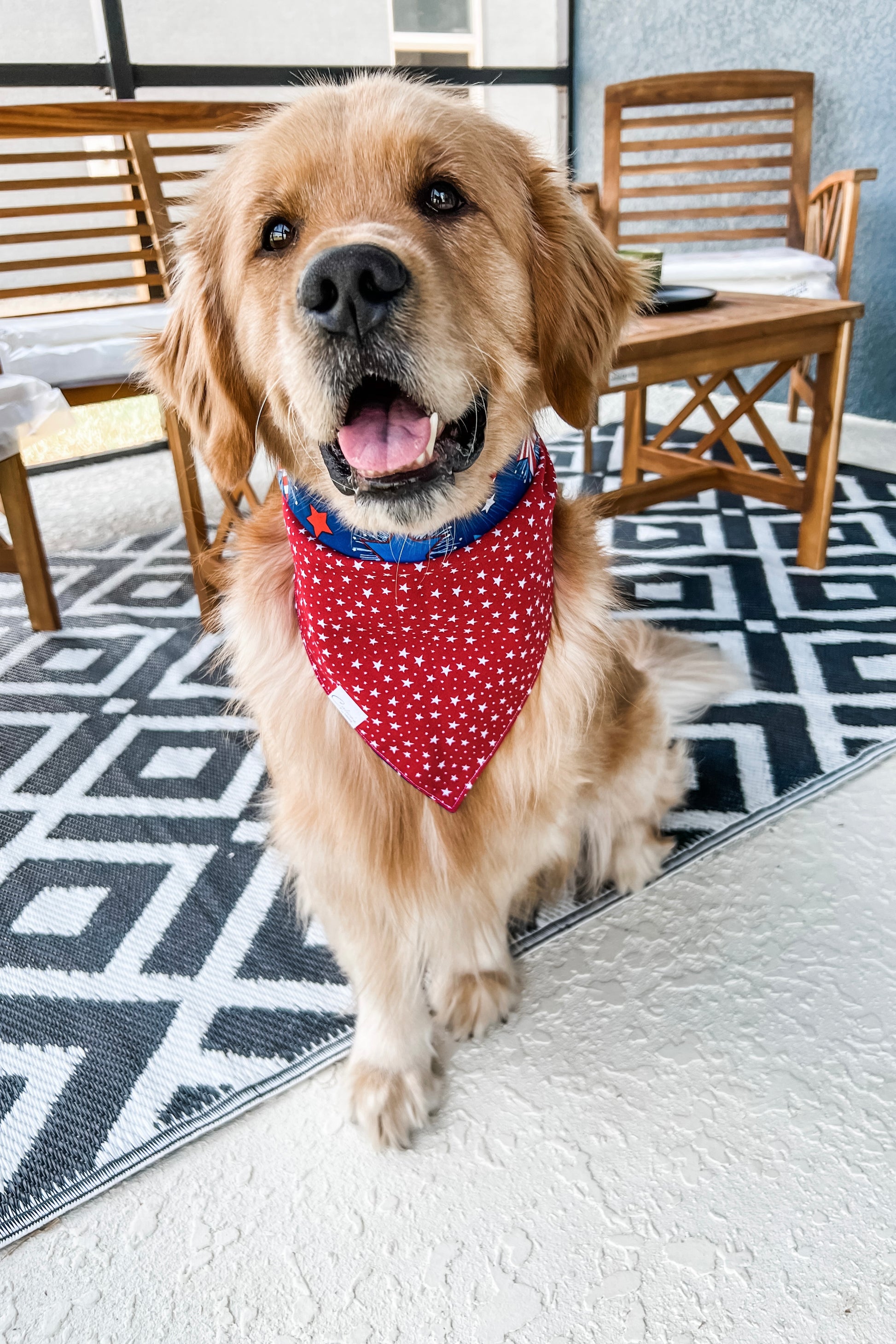 Please note: All bandanas are handmade. Pattern placement and triangle sizing may vary slightly but we will be sure the neck size stays the same!