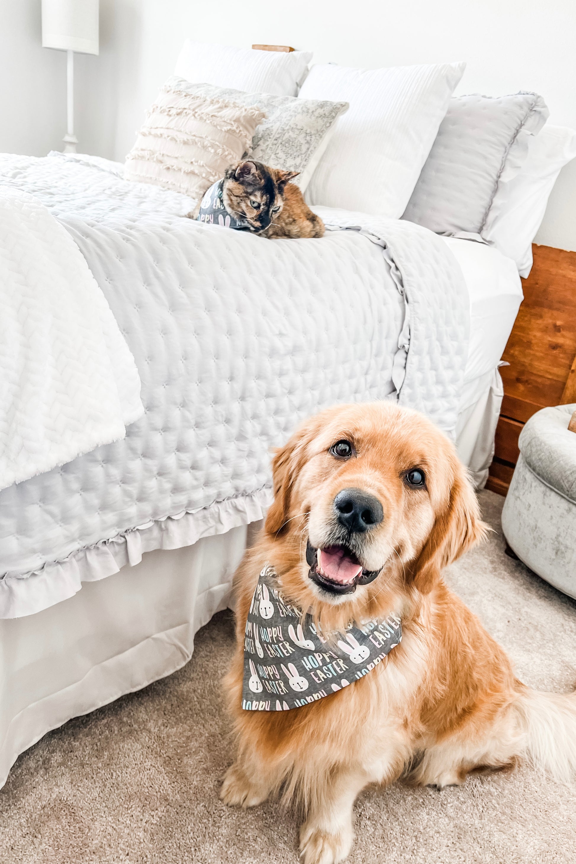 Each bandana is handmade by my mom, Tina and comes with a "Calico's Boutique" tag sewed on! They are triangle shaped with a tie neck (cat bandanas have a collar insert instead) and double sided with the same fabric, making them sturdy, QUALITY bandanas.