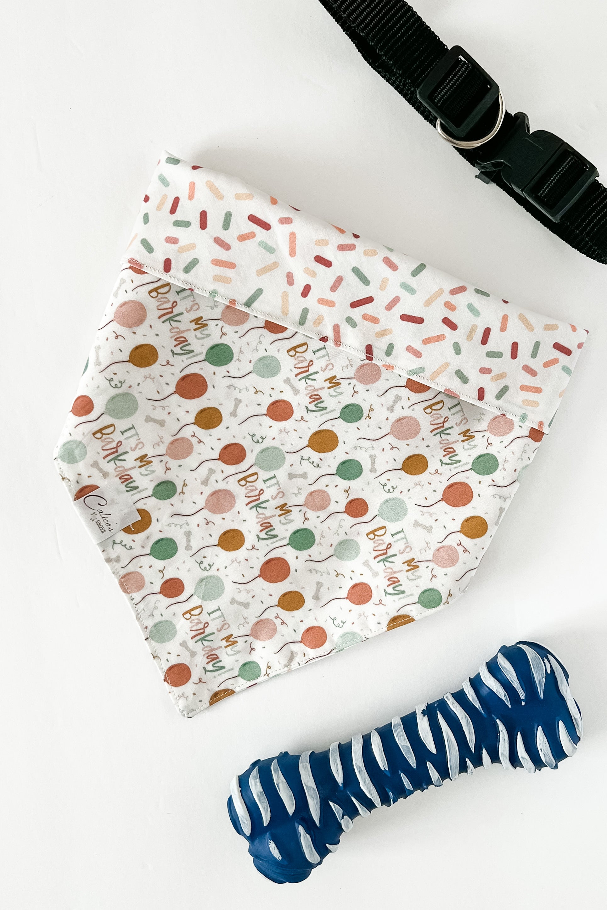 Each bandana is handmade by my mom, Tina and comes with a "Calico's Boutique" tag sewed on! They are triangle shaped with a tie neck (cat bandanas have a collar insert instead) and double sided with the same fabric, making them sturdy, QUALITY bandanas.